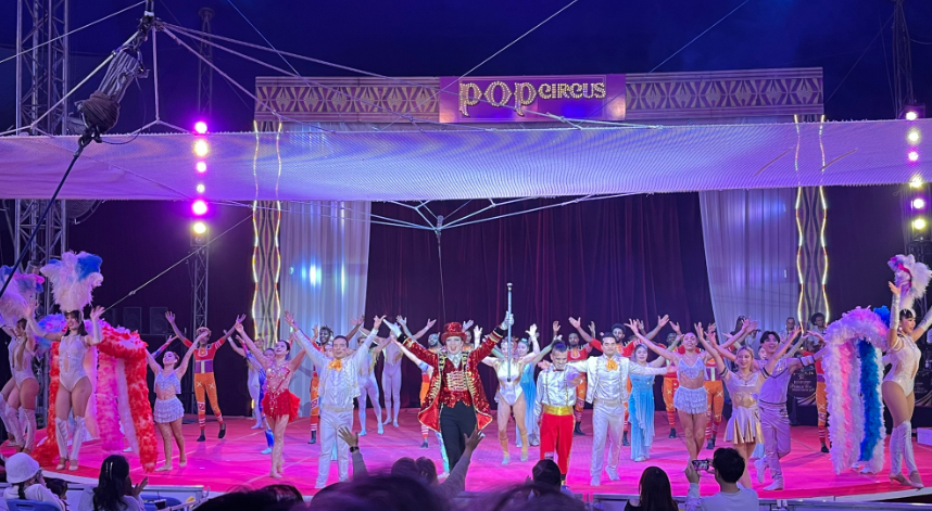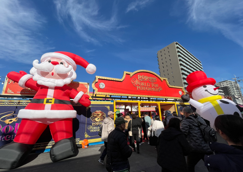 1日目は昼から、東大阪市役所前で期間限定公演中のポップサーカスを観覧。